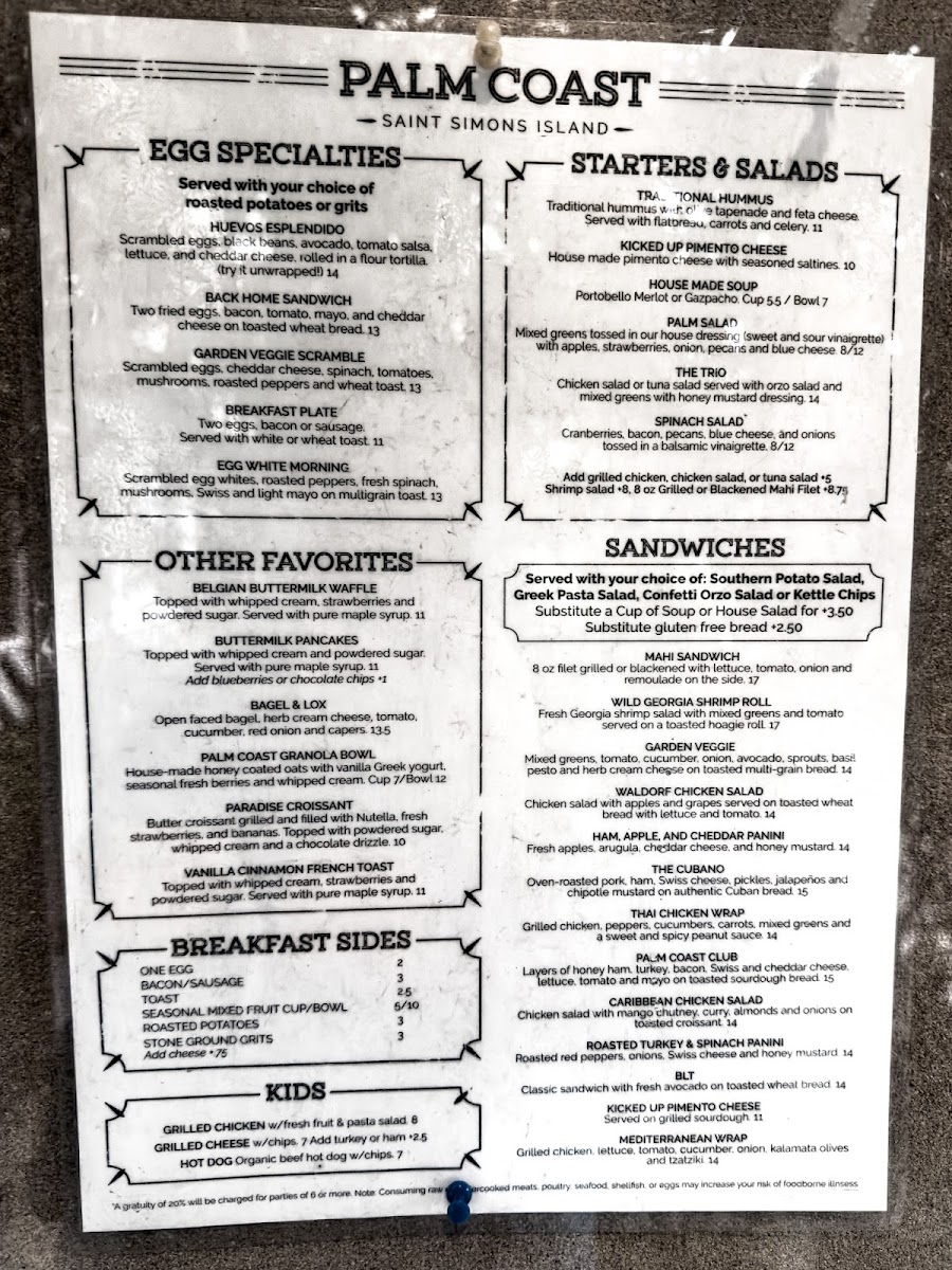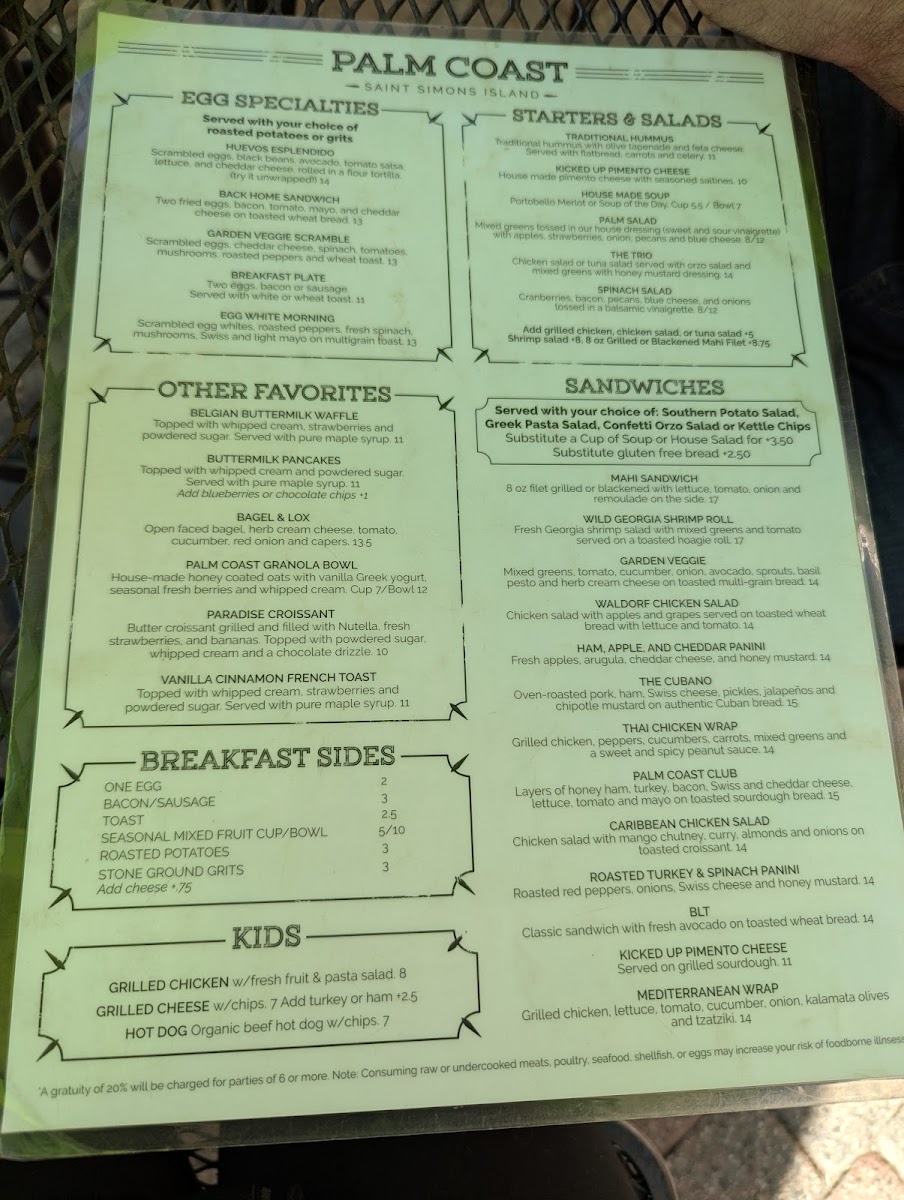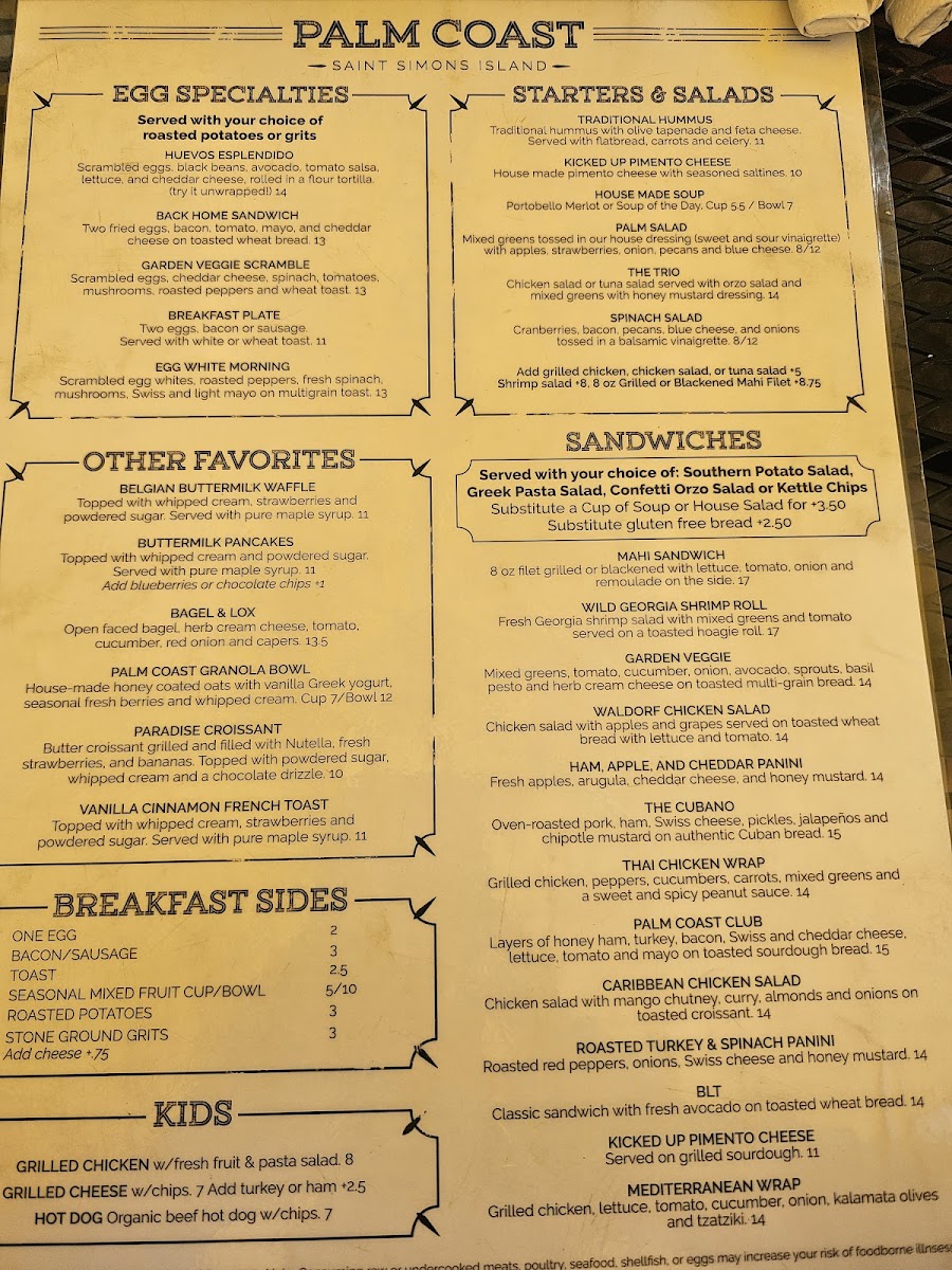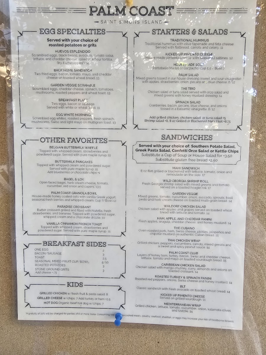 At Palm Coast, you’re in for a treat with a menu packed full of fresh, flavorful dishes that showcase the best of coastal cuisine. Located at 318 Mallery St in St Simons Island, GA, this spot is the perfect place to relax and enjoy a meal with friends or family. Whether you're craving seafood, classic Southern comfort foods, or something unique, Palm Coast Menu has something for everyone. From tender shrimp and grits to expertly prepared steaks, the menu offers a variety of options to suit every taste. Pair your meal with a refreshing drink from their selection, and you’ve got the perfect dining experience. With a laid-back atmosphere and dishes made from the freshest ingredients, dining here feels like a true getaway.